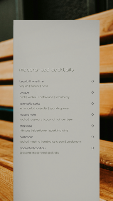 Discover the artistry and adventure at Macera! The brand concept is derived from the wave, symbolizing the dynamic and fluid nature of a journey. It represents the flows of experiences of the bar offerings and alludes to the artistry involved in crafting beverages, like the blending of ingredients in a cocktail, the wave embodies the fusion of flavors.